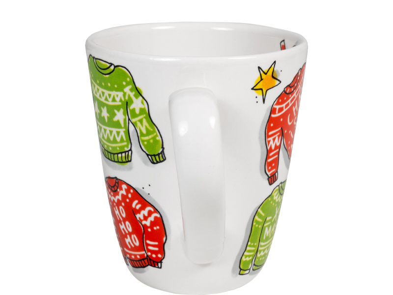 Met deze beker van 0.35l vol foute kersttruien haal je de gezelligste tijd van het jaar in huis. Elke trui en ster is met de hand ontworpen in de herkenbare Blond Amsterdam stijl. Perfect voor je koffie, thee of warme choco tijdens decemberdagen. Deze beker maakt deel uit van onze kerstcollectie van 2025 en combineert moeiteloos met andere Blond mokken, borden, glazen of schalen. Mix en match er lekker op los en maak van elk theemoment een feestje.