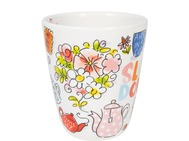 Slow down, shake it off & Lazy days. Met deze vrolijke alledaagse dingen en herkenbare situaties in een kleurrijk jasje geef je jezelf of een ander een BIG HUG! Deze SLOW DOWN beker staat helemaal in het teken van thee. Illustraties van bloemen, thee en teksten zoals; ‘Cup of positivitea’ zijn te vinden op deze beker. Met welke heerlijke thee ga jij deze beker vullen?